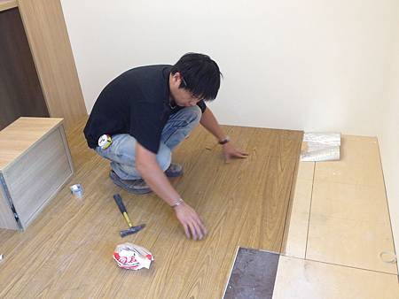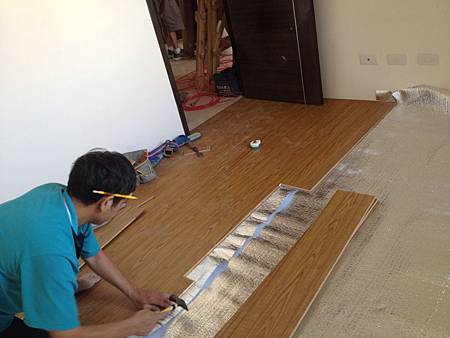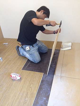 地板鋪設施工中
