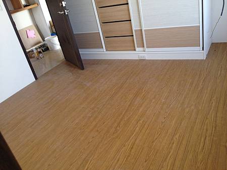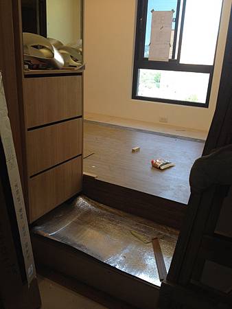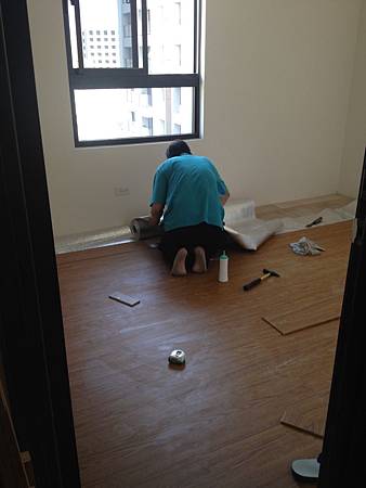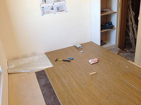 地板鋪設施工中 其一臥室已鋪設完成