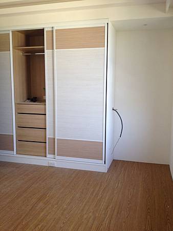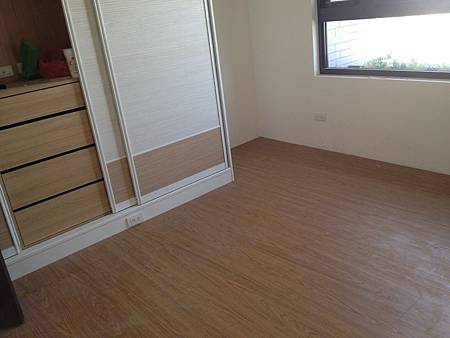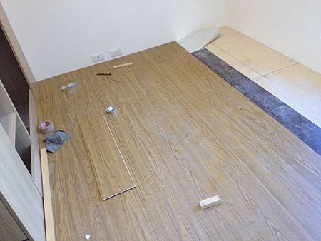 地板鋪設施工中 其一臥室已鋪設完成 水電已預留插座及開關給化妝台使用