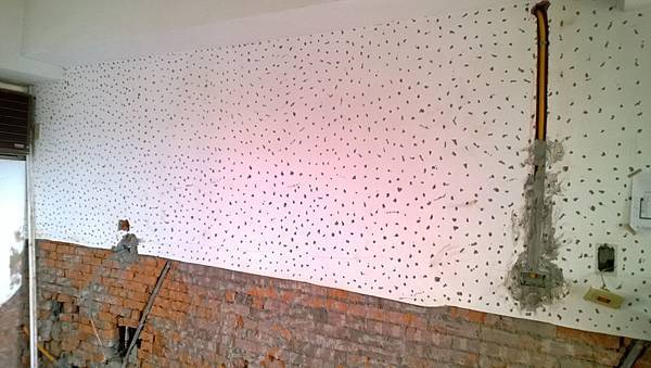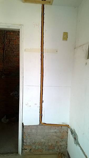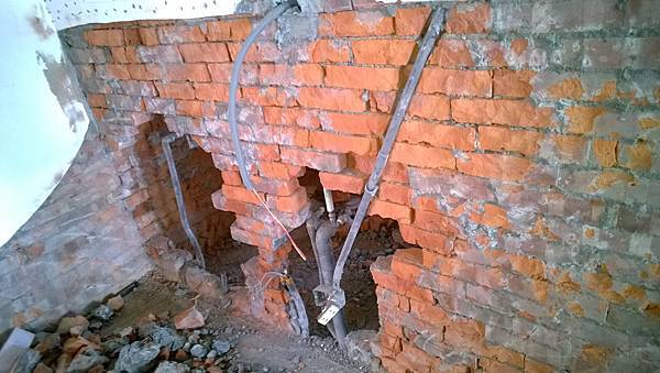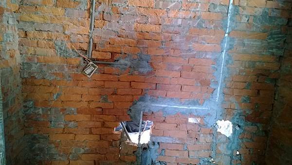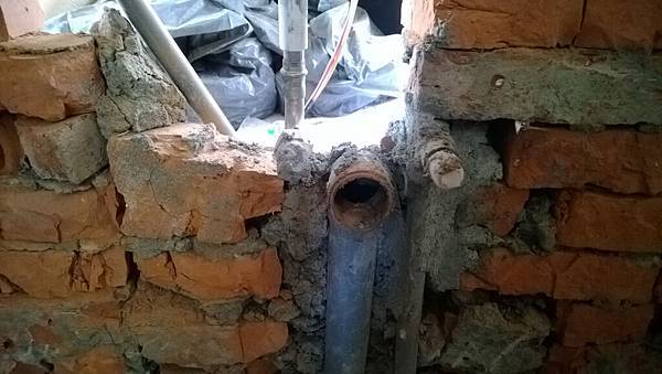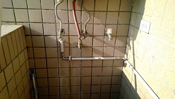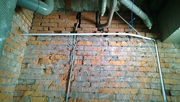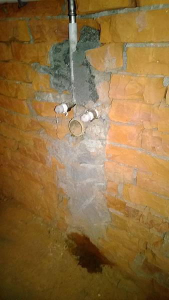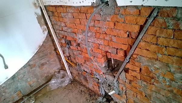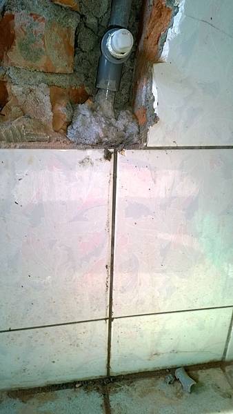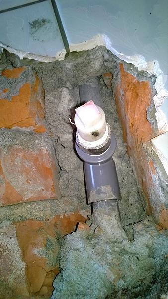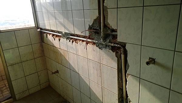 共浴冷水管洩水現象,需打除牆面查驗洩水處及重新配置冷水管