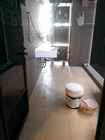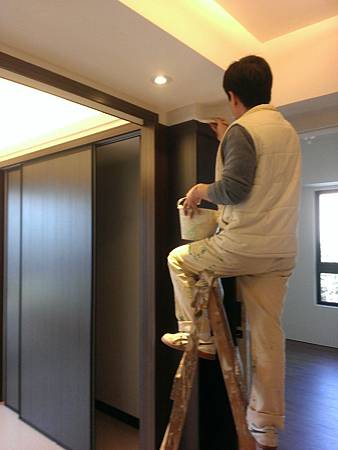 主臥室門口地板殘膠未清除 油漆門框補漆