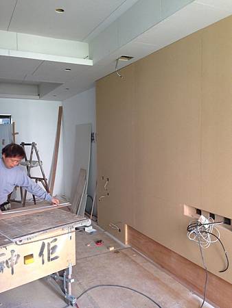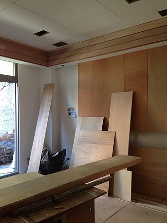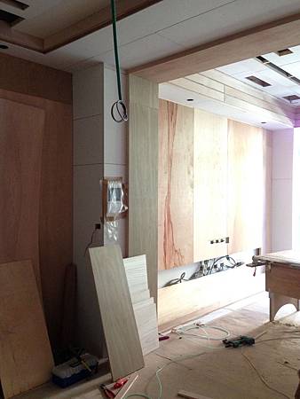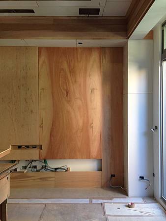 3樓主臥室木皮牆面討論及施作,木皮紋理確認