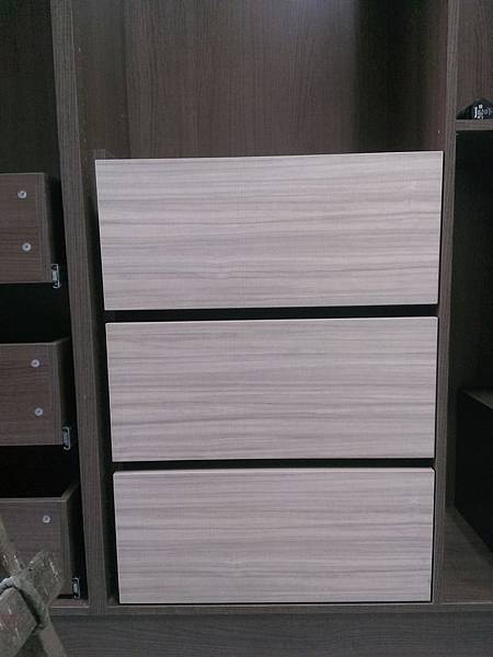 衣櫃門片待安裝 使用緩衝絞鍊與崁入式把手