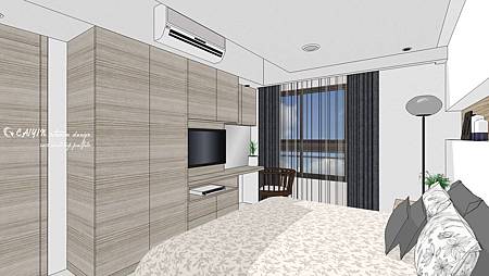 麻雀雖小,五臟俱全!正是這個小坪數臥室的寫照.電視櫃與化妝台的延伸運用,也成