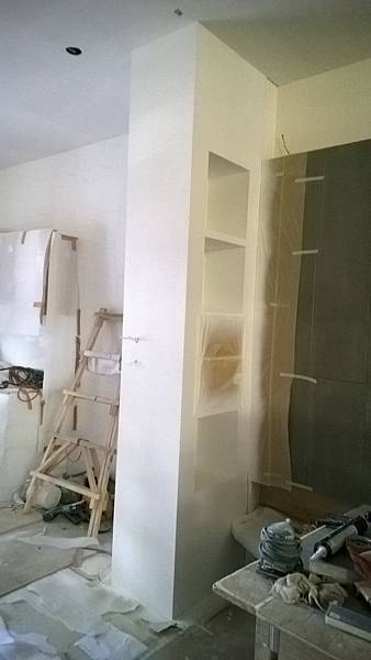 1F客廳沙發造形背牆油漆批土施作