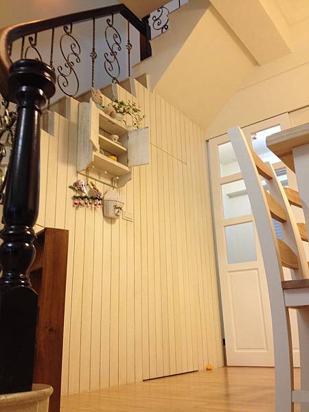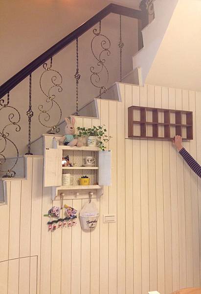 樓梯轉角展示台,放置家裡小朋友的勞作作品