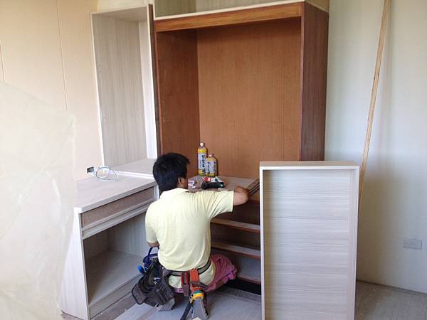 小孩房 床頭造型凹洞 ICI油漆跳色刷色