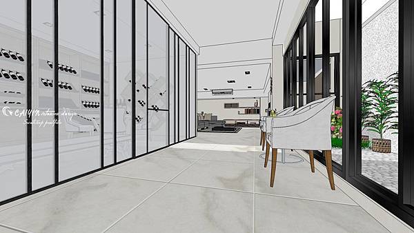 牆面 : 隔間牆面 採用了黑鐡烤漆及清玻璃的搭配 視覺也更加寬廣
