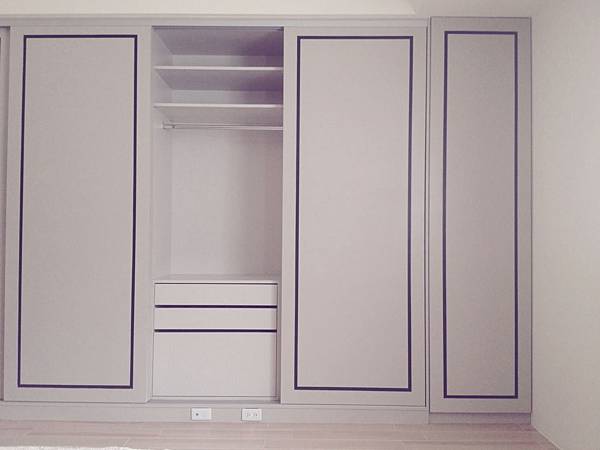 採用滑門滾黑框襯托出更衣區衣櫃造型的立體感