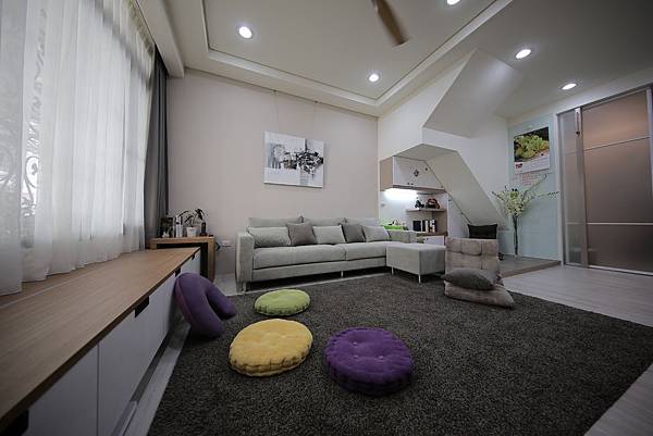 - 用窗沙點叕出空間溫和感筧,並也增加客廳牆面的立體感