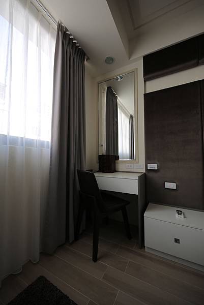 並也延伸至化粧台設計,簡單的烤漆邊框,點叕出明鏡區範圍