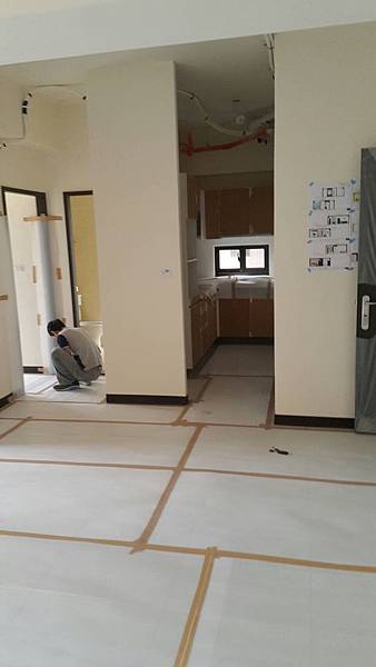 玄關入口+廚房+走道地板防護工程施工中
