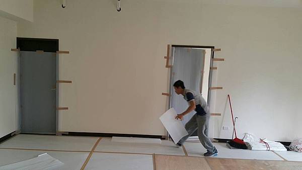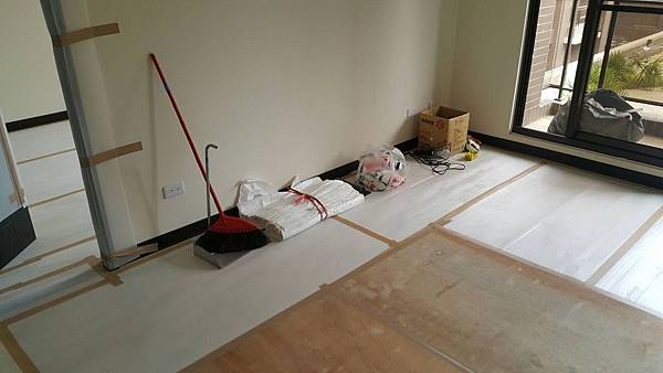次臥室地板防護施工完畢
