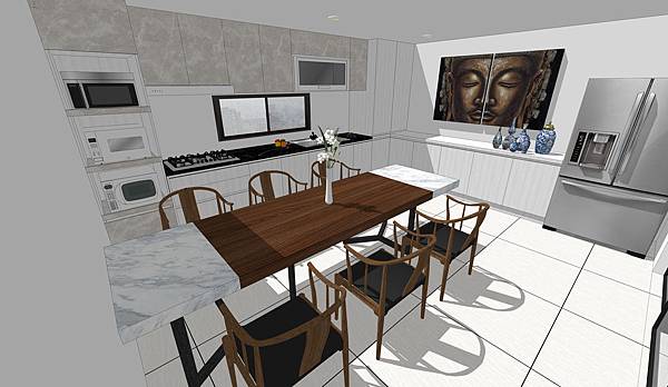 廚房空間利用更換櫥櫃面板的方式調整餐廳空間氛圍,
