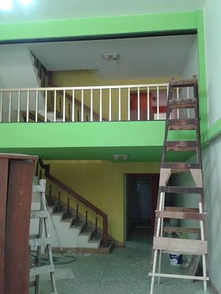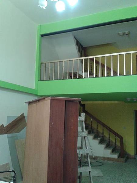 一樓大廳跳色主牆|虹牌油漆|AP61-4|蕁蔴綠,一樓樓梯主牆|虹牌油漆|AP58-4|奇光黃