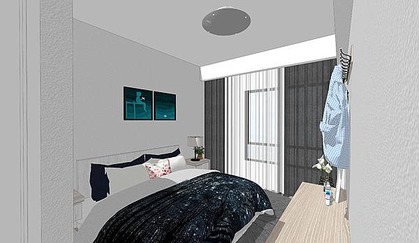 擷取藍綠色調的冷靜語彙,使其勾勒出靜謐的睡眠空間,