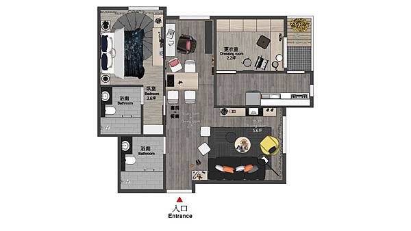 空間設計 : 客廳空間、餐廳空間、書房空間、臥室空間、更衣室空間