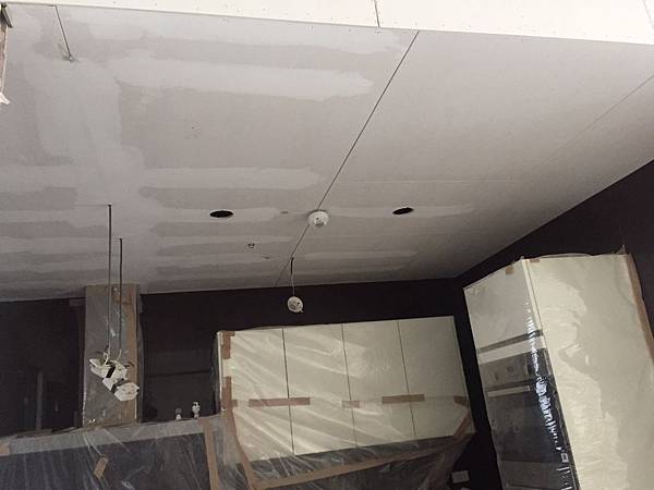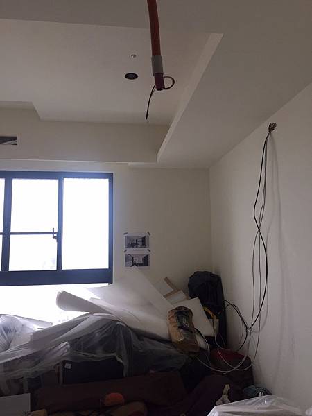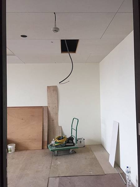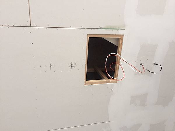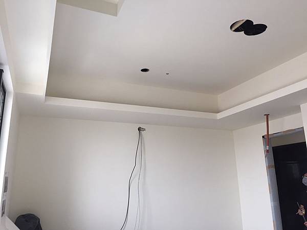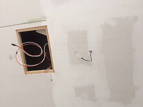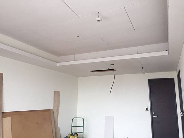 主臥室天花板封板施工預留水電拉線路維修孔(僅拉線用,之後封除)