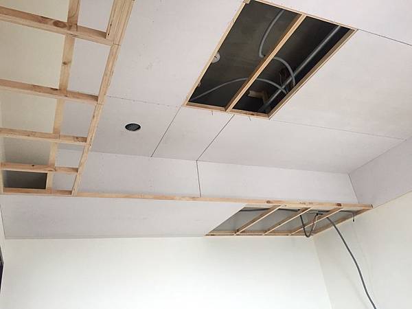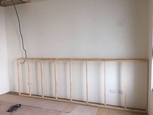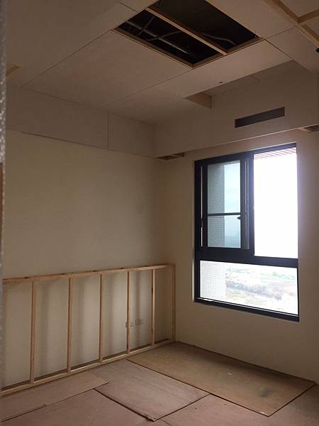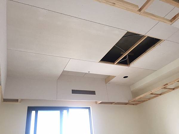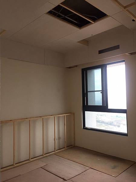 施作內容:木作天花板矽酸鈣封板施工、床背牆面底才結構施工