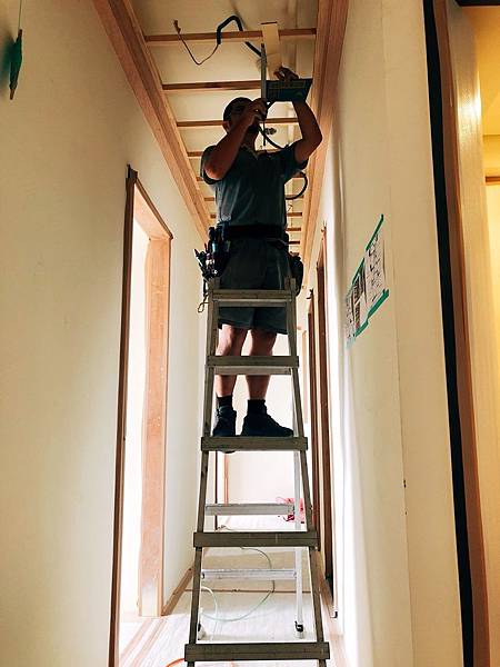 走道空間水電灑水頭高度修改施工中