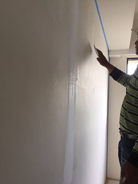 油漆跳色施工前 牆面不平整處修飾批土施工