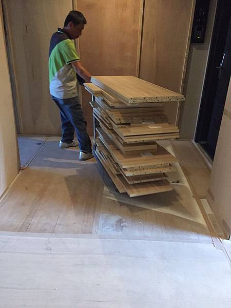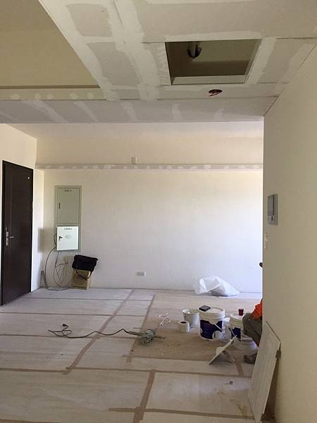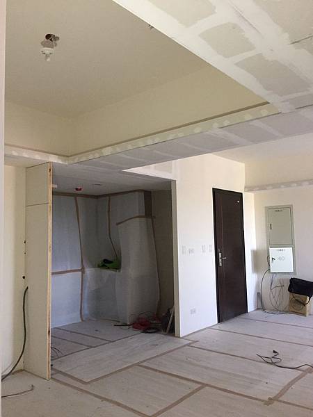 施作內容:室內天花板壁面批土施工、系統櫃材料進場