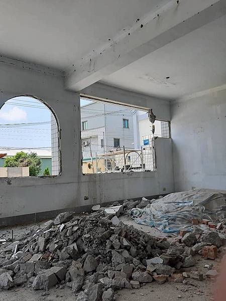 外牆壁面窗框拆除施工進度紀錄